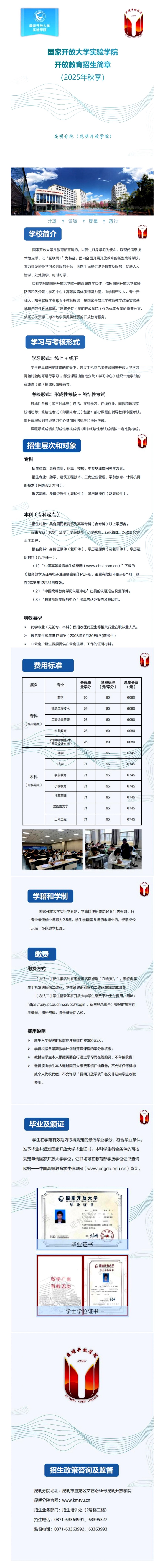 【招生简章】国家开放大学实验学院昆明分院2025年秋季开放教育招生