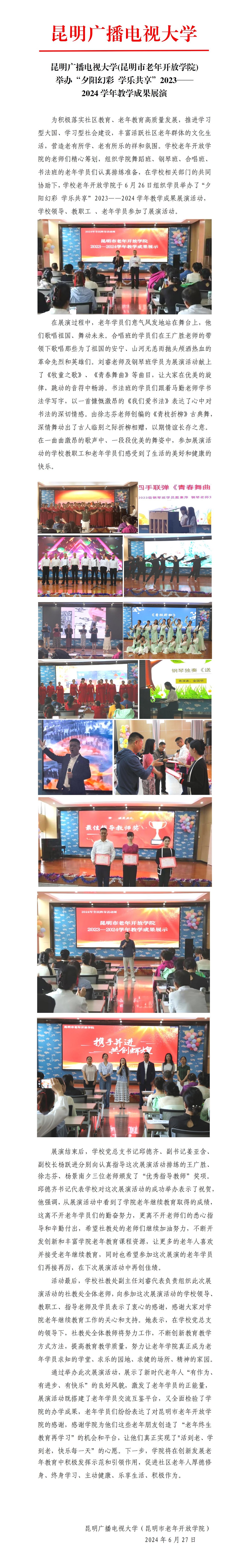 我校(昆明市老年开放学院)举办“夕阳幻彩 学乐共享”2023——2024学年老年学员展演
