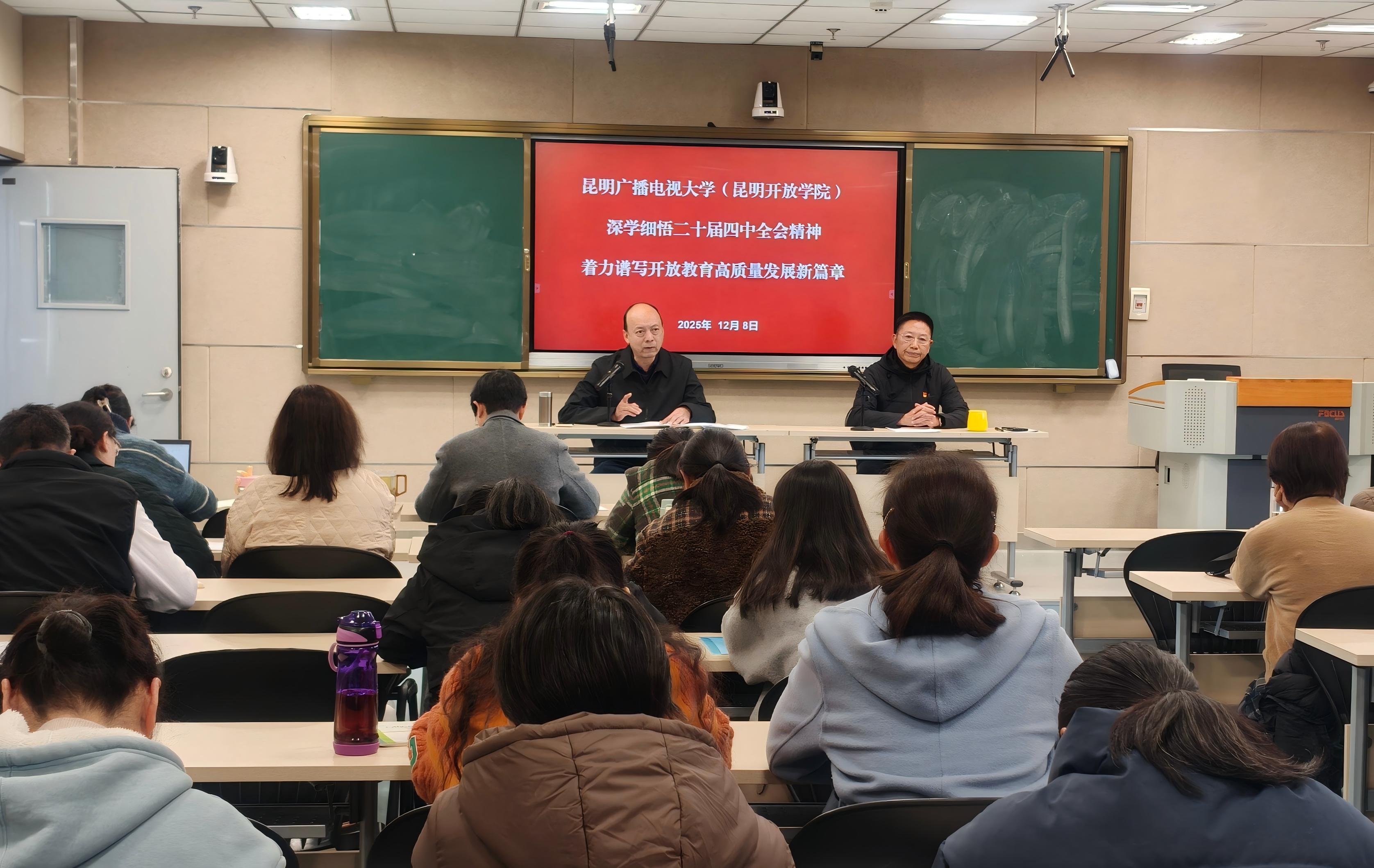 昆明广播电视大学(昆明开放学院) 举办党的二十届四中全会精神宣讲大会 暨学校“十四五”发展情况报告会