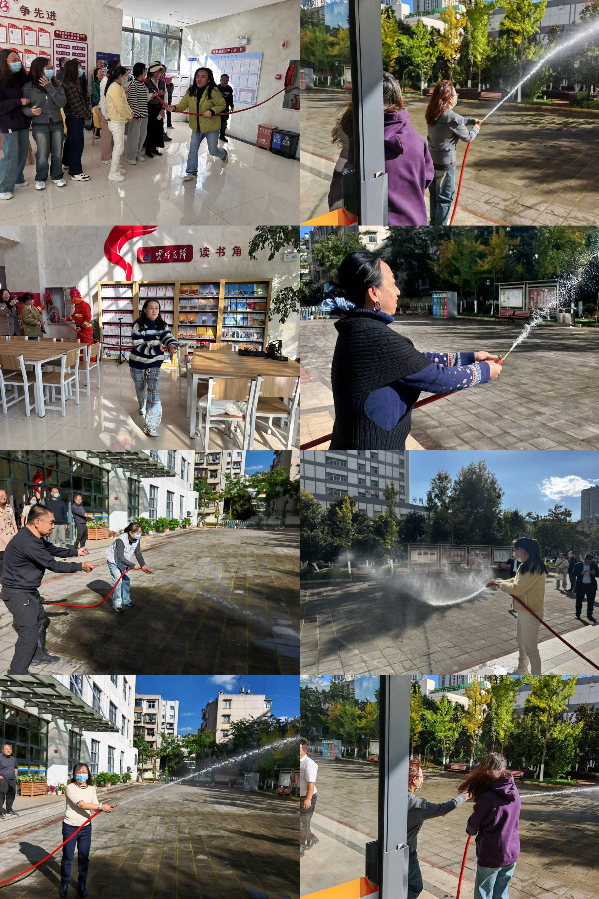 4.消防红色卷盘使用学习:在昆仑保安公司消防安全培训员的指导下,学校教职工亲自上阵实操了消防红色卷盘灭火,对消防设施的使用有了直观认识。