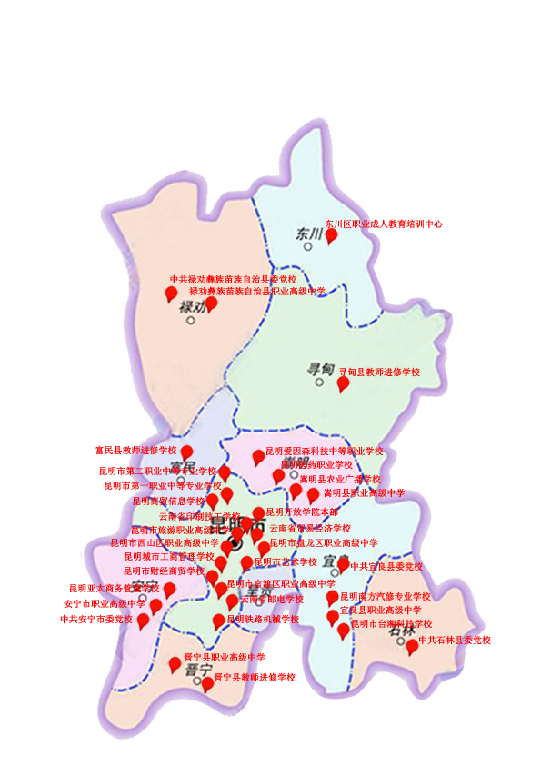 昆明开放学院联盟办学体系区域布局图